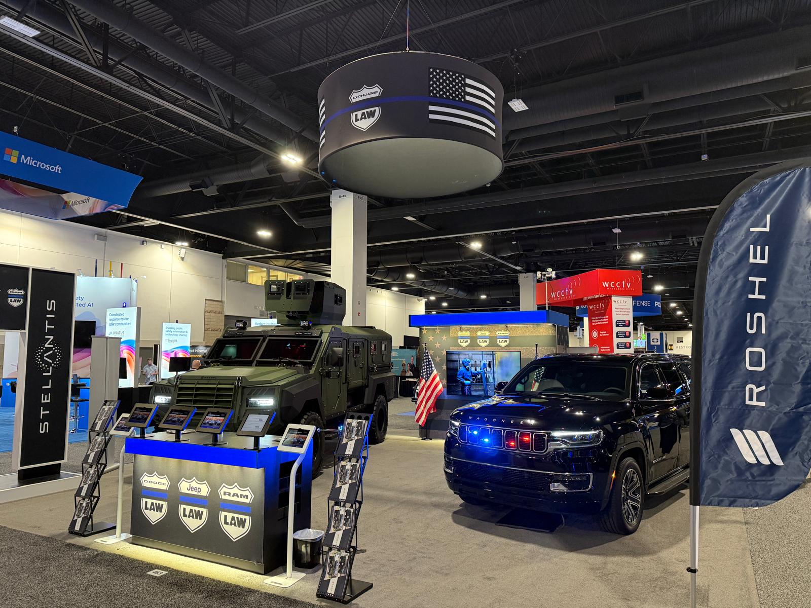 The highlights of the exhibition are the Jeep® Wagoneer, fully designed and engineered by Roshel in collaboration with Stellantis and the armored commercial Senator MRAP (Mine Resistant Ambush Protected), built on the Ram 5500 Chassis Cab.